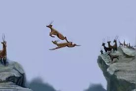 试跳成功!紧接着,一对一对班羚凌空跃起,山涧上空划出一道道令人眼花撩乱的弧线,一只只老年班羚全摔得粉身碎骨。